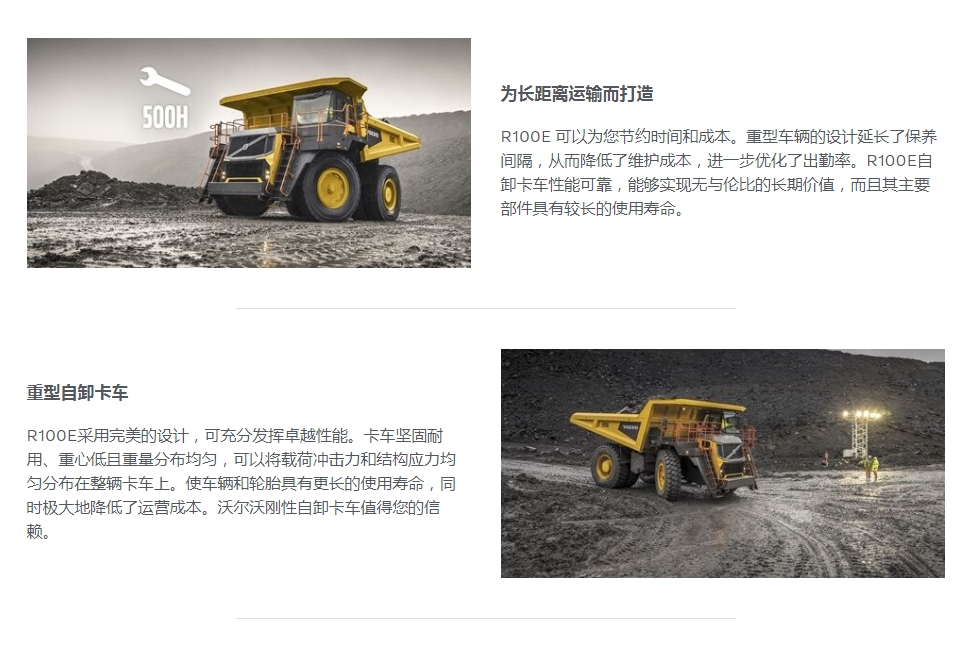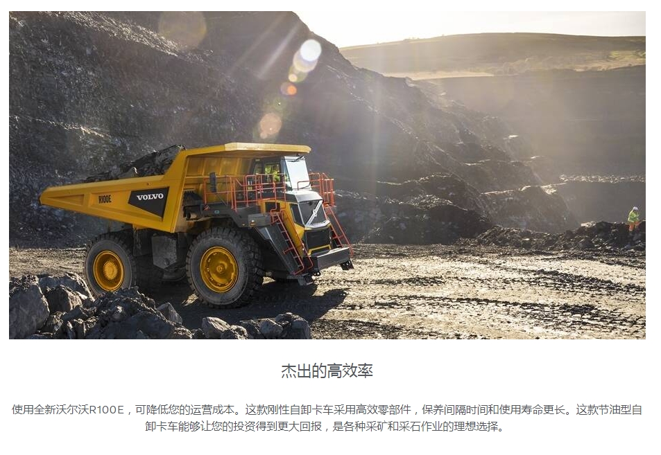 节油型R100E刚性自卸卡车可以让您的投资得到更大回报,是各种采矿和采石作业的理想选择。凭借通过ROPS/FOPS认证的驾驶室、久经验证的安全系统和易于触及的检修口,沃尔沃R100E刚性自卸卡车从内到外无比安全。
